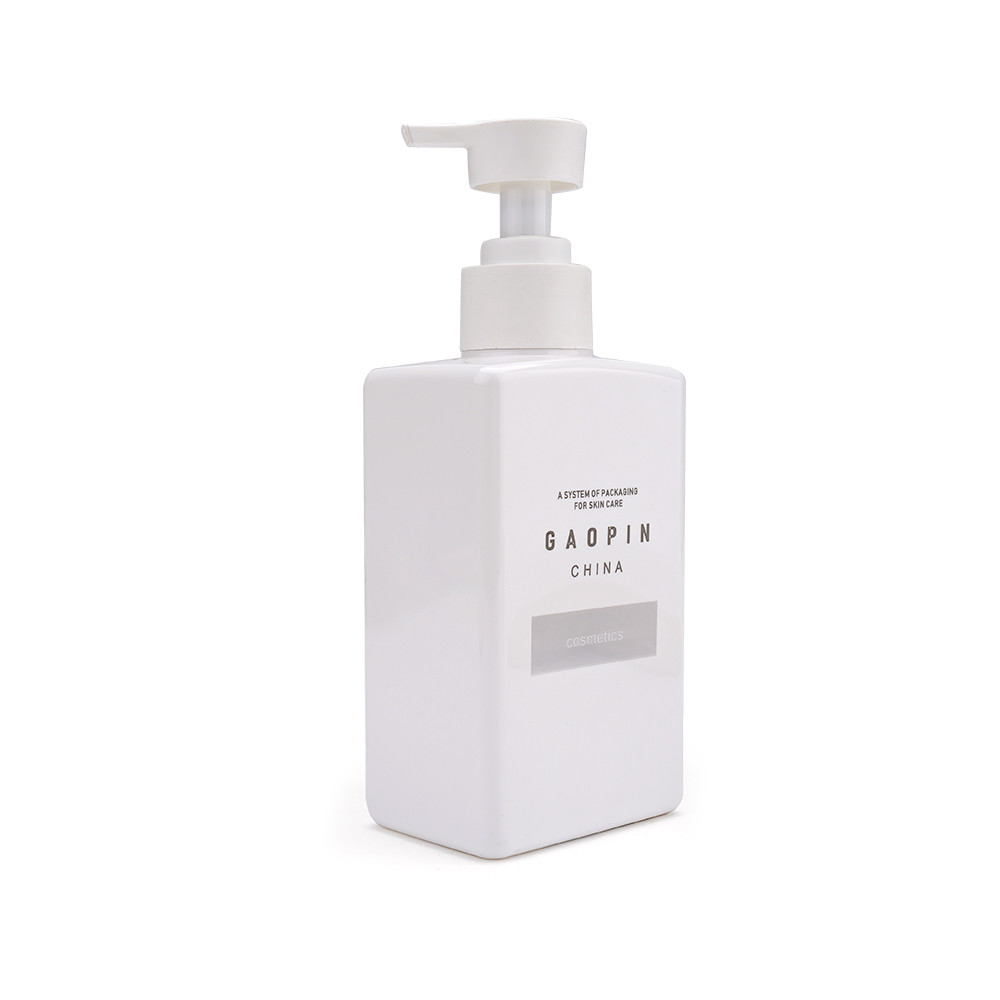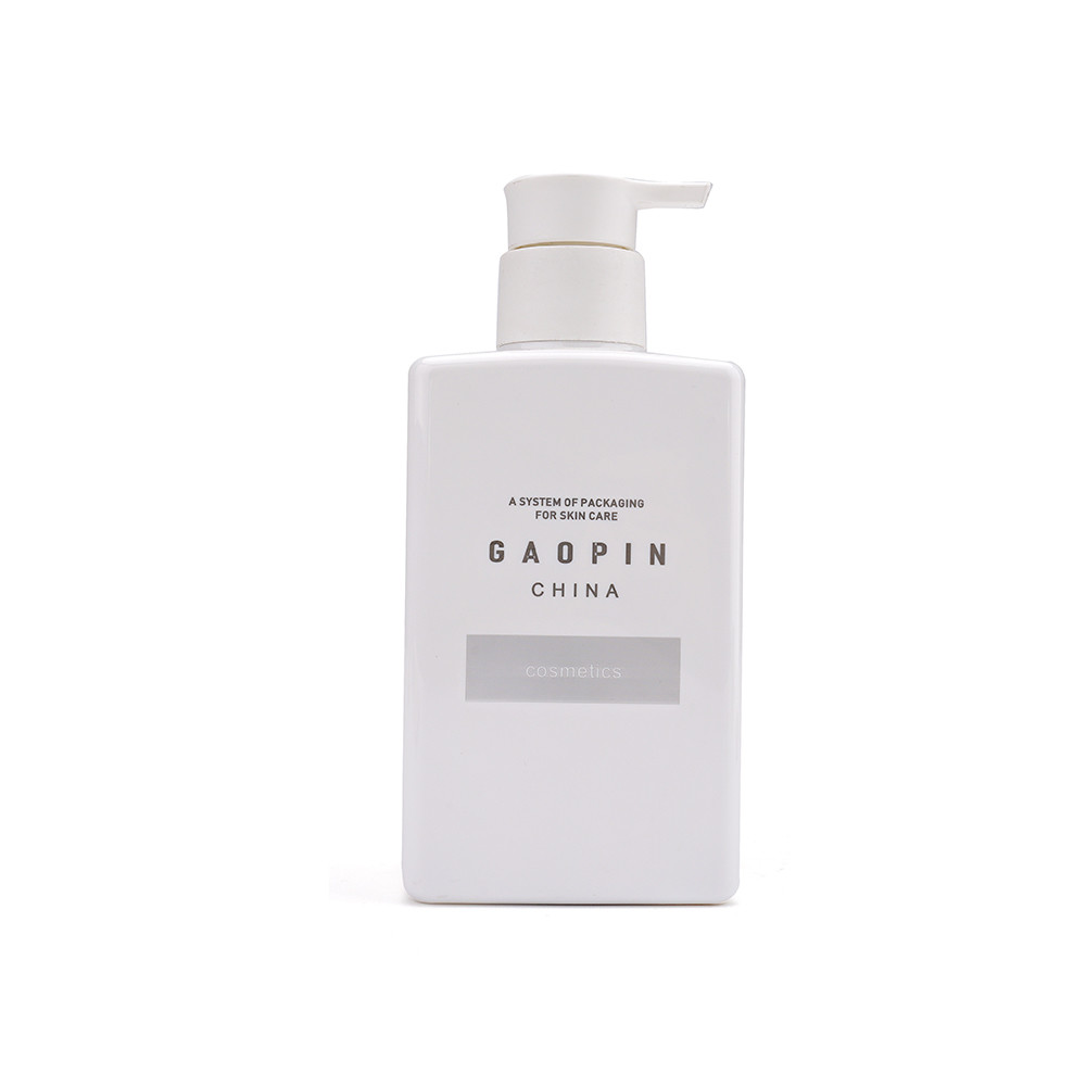 Botella del champú del cuadrado 300ml con la bomba de la loción. Empaquetando para algunas necesidades del hogar, por ejemplo, champú, gel de la ducha, desinfectante de la mano.