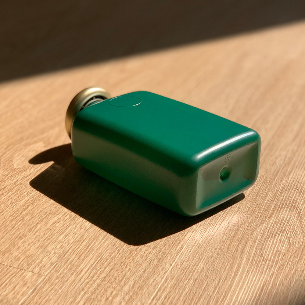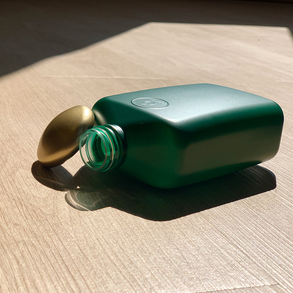 Botella cuadrada verde del gel de la ducha del champú con un tapón de tuerca diseñado único, una buena calidad, una buena tirantez y una protección del medio ambiente.