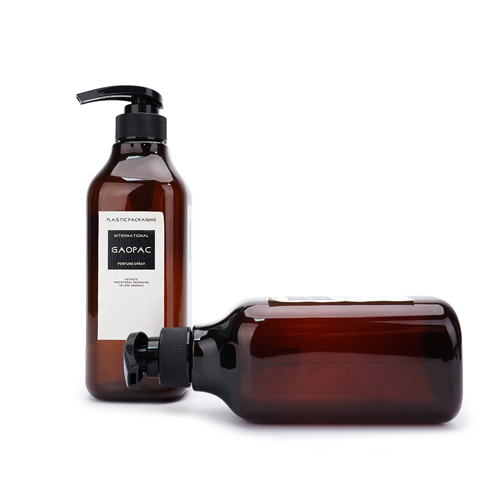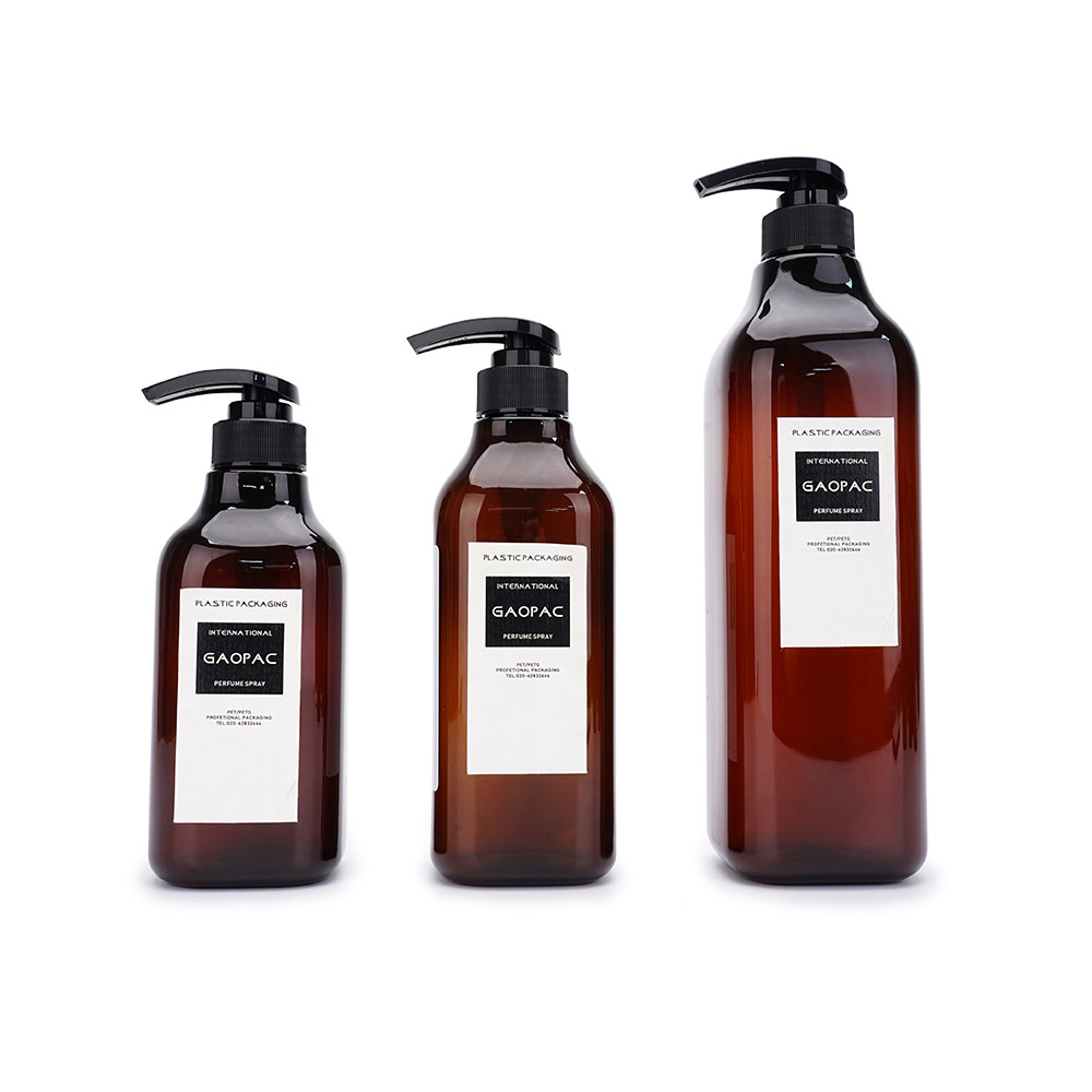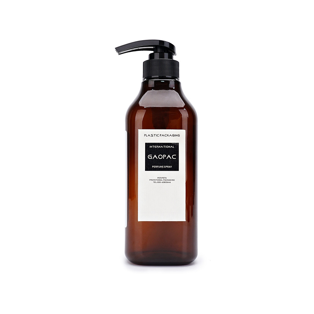 La botella del champú de Brown de la capacidad grande, 500ml, 600ml, 1000ml, se puede también utilizar para la producción del cuidado personal como el desinfectante de la mano, gel de la ducha, acondicionador. Y nuestra compañía ofrece servicios de encargo.