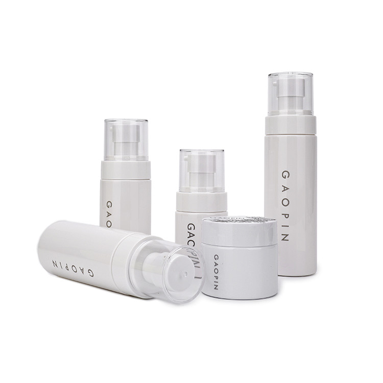 Equipo blanco del cuidado de piel. Los materiales respetuosos del medio ambiente, descolorido e insípido, pueden ser reciclados. Boca de la botella de Spirical, colada fácil, buen aislamiento.